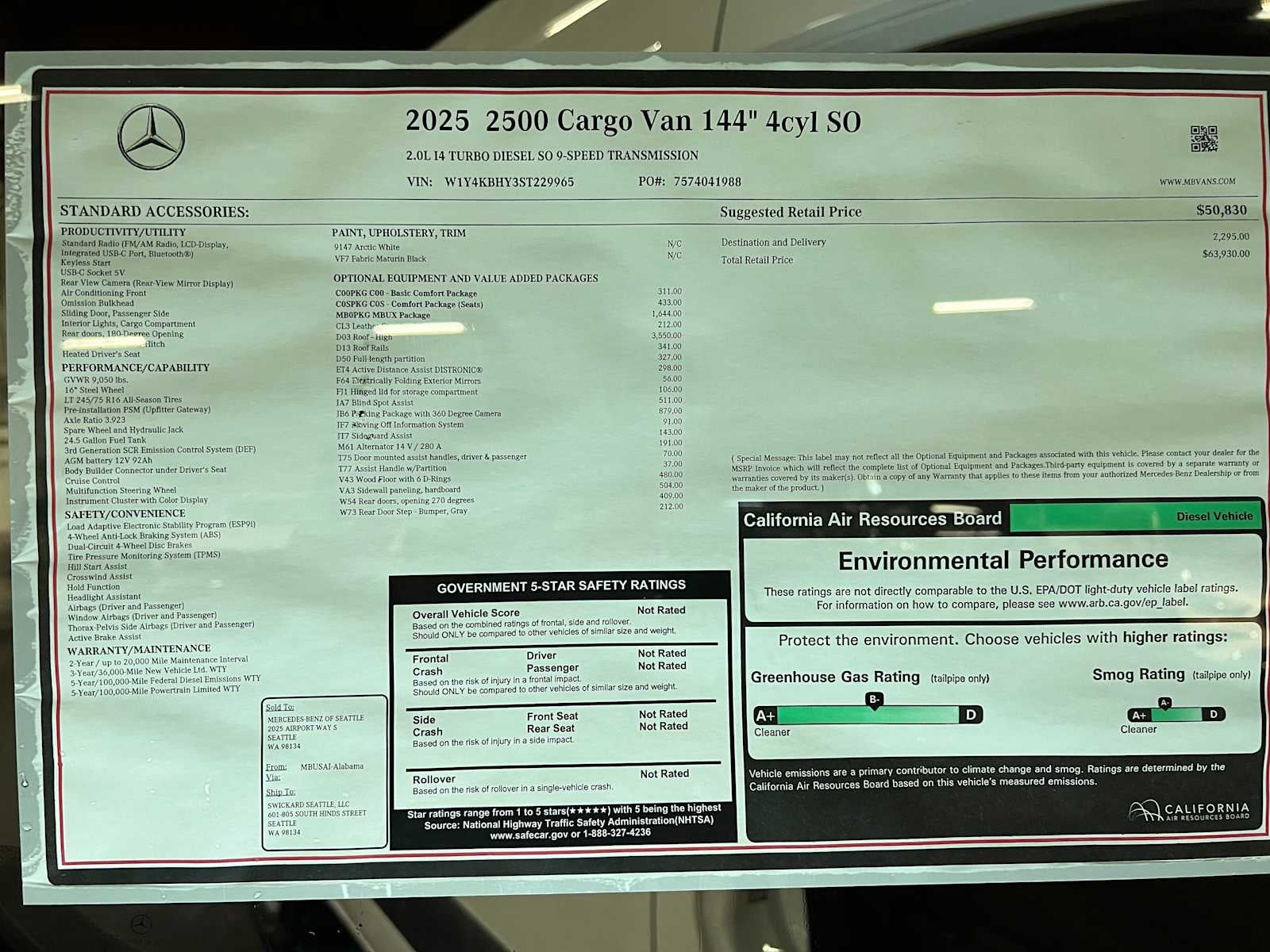 - Vehicle Name: Mercedes-Benz Sprinter Cargo Van