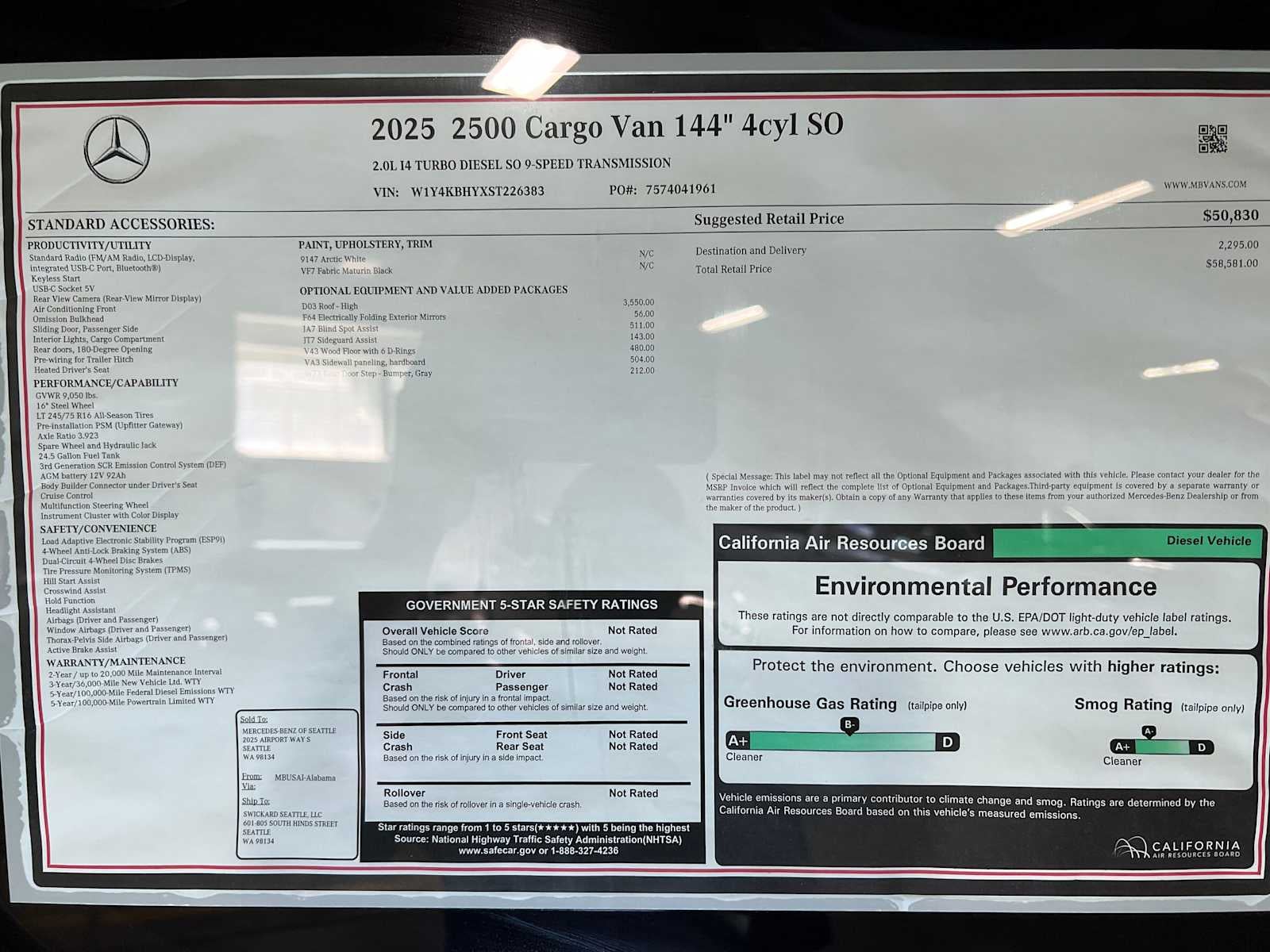 - Vehicle Name: Mercedes-Benz Sprinter Cargo Van