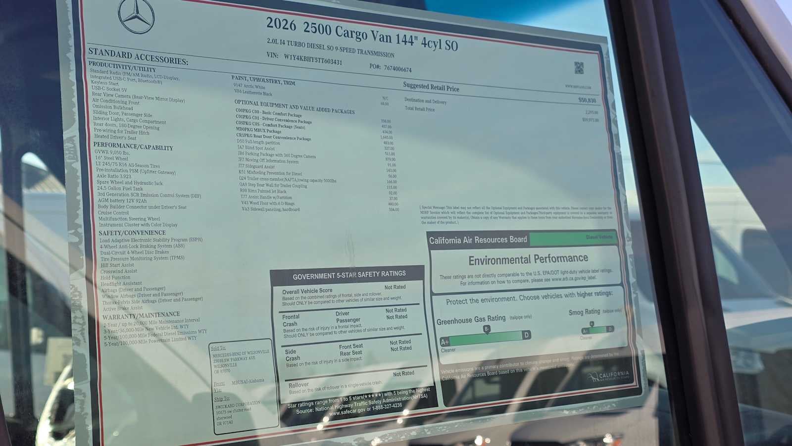 - Vehicle Name: Mercedes-Benz Sprinter Cargo Van