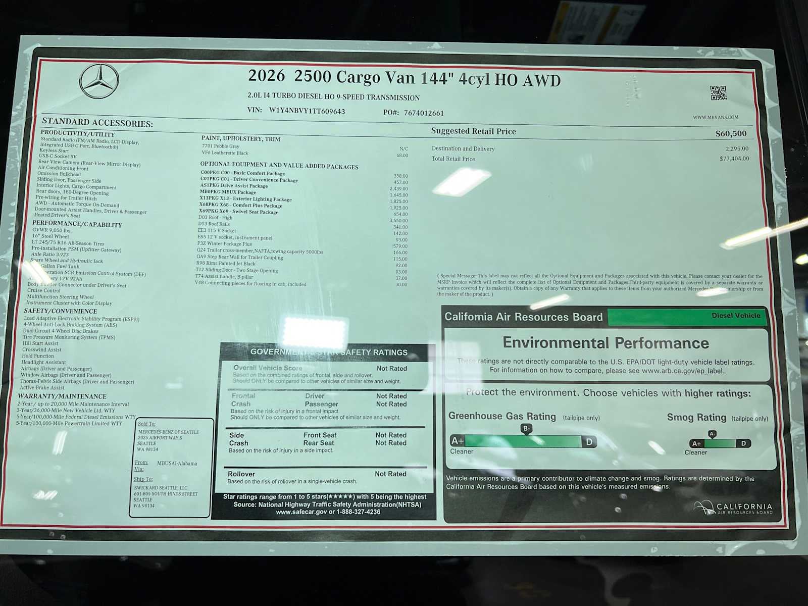 - Vehicle Name: Mercedes-Benz Sprinter Cargo Van