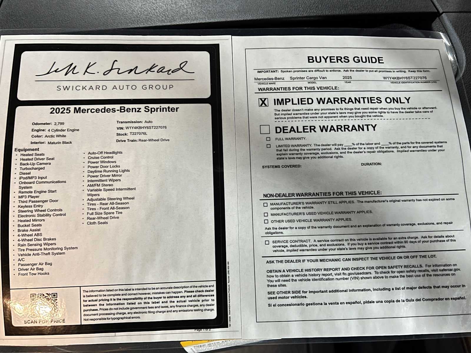 - Vehicle Name: Mercedes-Benz Sprinter Cargo Van