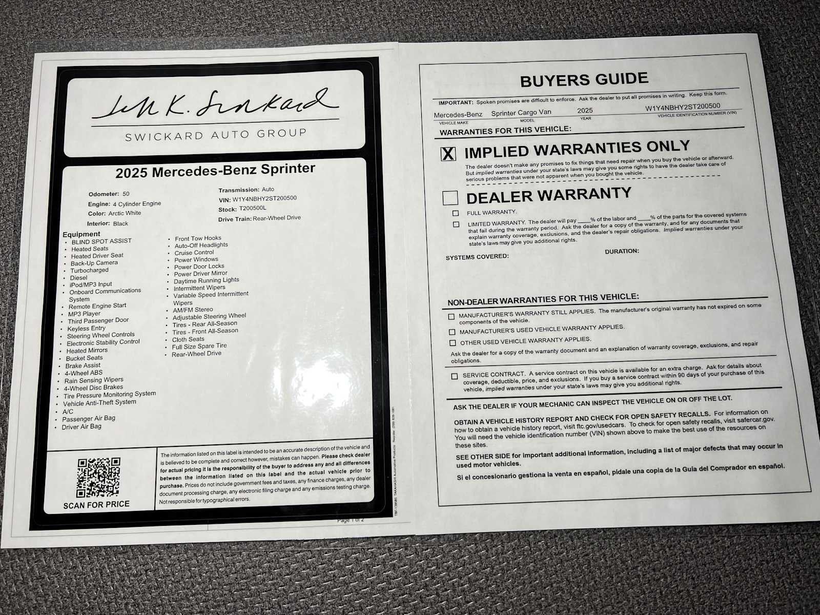 - Vehicle Name: Mercedes-Benz Sprinter Cargo Van