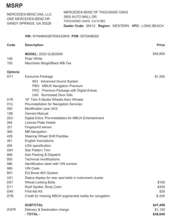 - Vehicle Name: Mercedes-Benz GLB