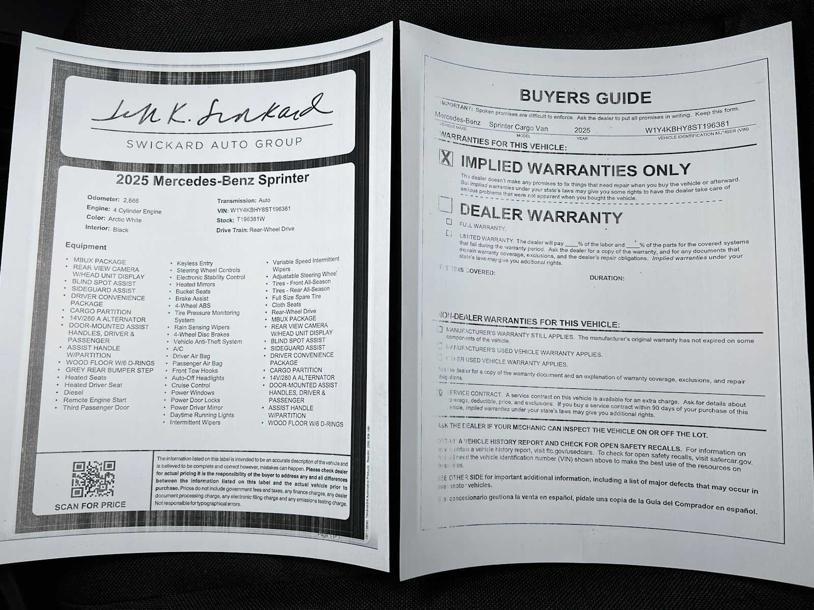 - Vehicle Name: Mercedes-Benz Sprinter Cargo Van